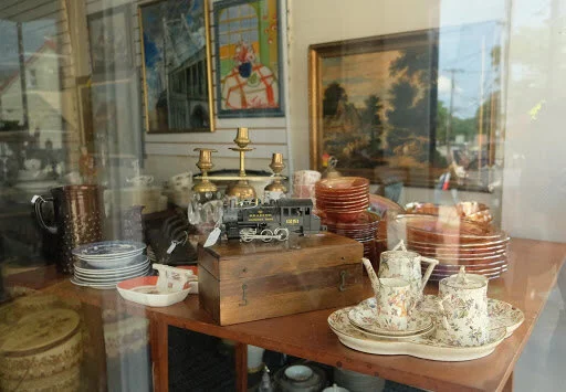 As seen in the window of LadyLike Antiques on Main St.